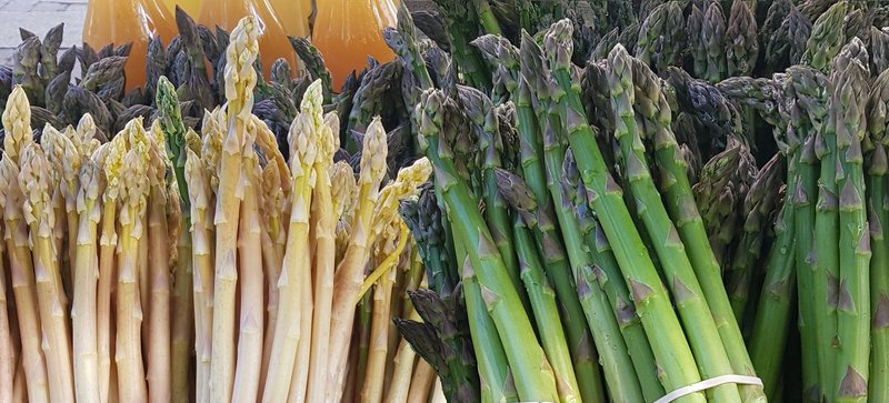 One of the treats of spring is new season aspargus. Just boiled and served with butter and new potatoes. simple and delicious.